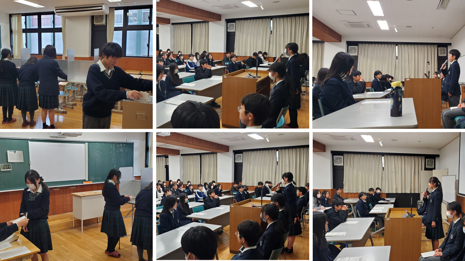 生徒会選挙 2025年度のNews 2025.12.262025.12.08 12月5日(金)生徒会選挙立会演説会を行いました。各候補者は生徒会活動に対する熱い思いを全校生徒の前で語りました。その後、各学年毎に教室に分かれて投票を行いました。今年も南丹市選挙管理委員会から投票箱と記載台をお借りしました。新しい役員の皆さんの活躍を期待しています。 Post Views: 7