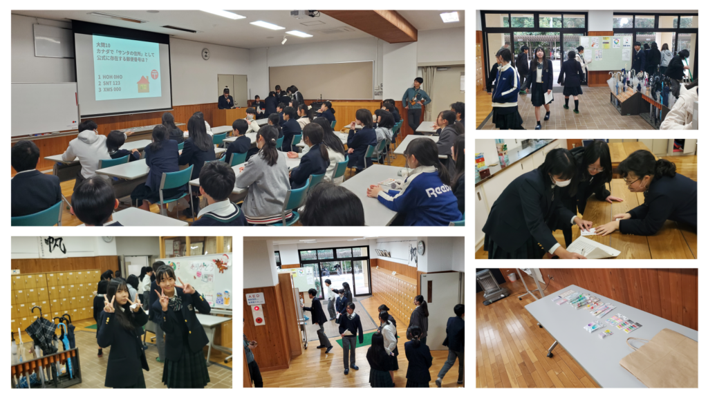 笑って、答えて、楽しんで!メリークイズマス! 2024年度のNews 2025.12.262025.12.15 12月12日(金)、生徒会主催のクリスマスイベントを行いました。アットホーム活動のグループで校舎の中に隠された問題の用紙を探し出し、答えていきました。用紙は意外な所に隠されており、見つけるのも大変でした。問題も高度なものが多く、楽しみながらクリスマスの文化について学ぶことができました。 Post Views: 6
