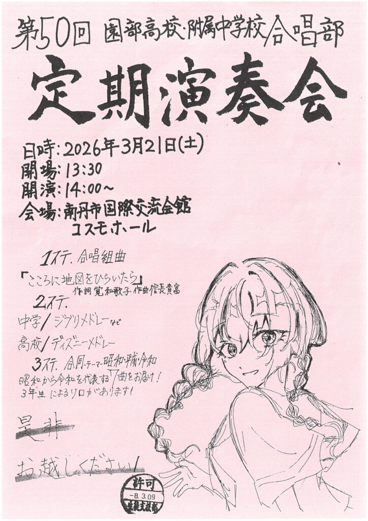 合唱部と吹奏楽部が定期演奏会を行います。是非ご来場下さい。