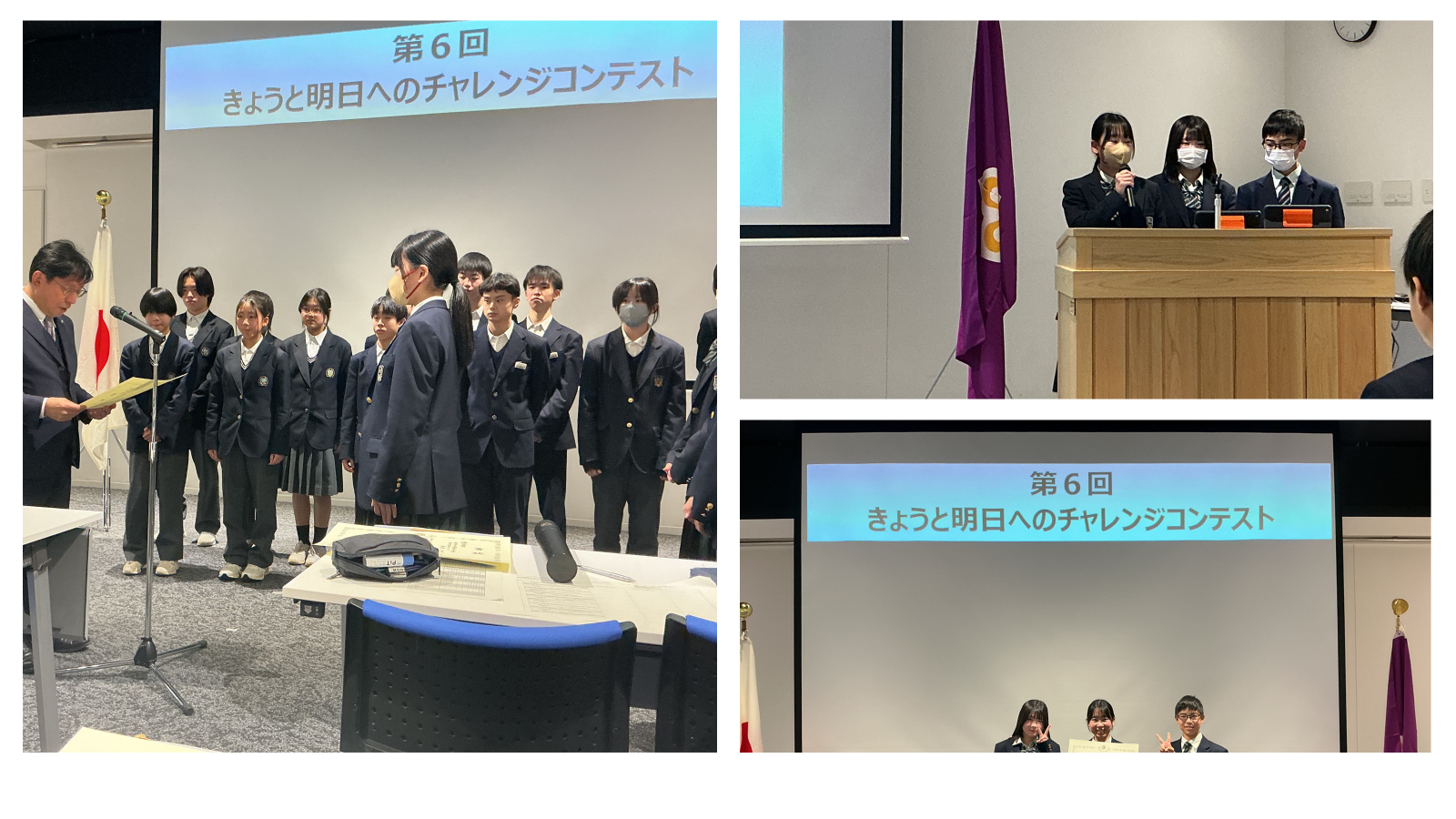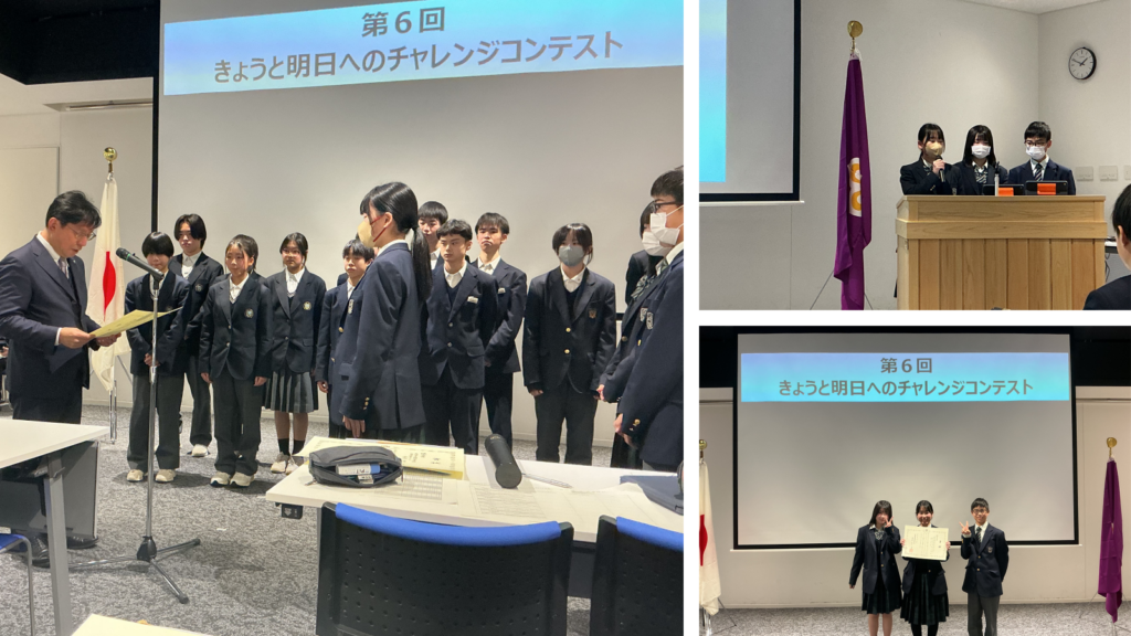 きょうと明日へのチャレンジコンテスト 2025年度のNews 2026.04.152026.02.16 京都府教育委員会が主催する「きょうと明日へのチャレンジコンテスト」は、地域や企業の課題、学校ごとの「正解のない問い」に取り組み、学ぶことで、社会と学校での学びのつながりを実感し、社会に役立つ体験をすること。また、その過程をとおして、知識や思考力などの“認知能力”と、意欲や協働などの“非認知能力”を一緒に育てることを目的として、実施されています。アットホーム活動の成果から、本校もこのコンテストに応募し、一次審査を通り、2月14日(土)の最終審査に進み、優秀賞を獲得しました。 Post Views: 4