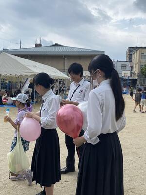 寸劇後は、防犯ブースにてバルーンアートの作成と配布の補助をし、地域の方々と交流を深めることができました。
