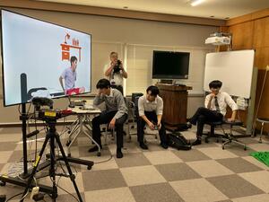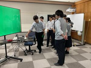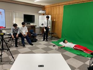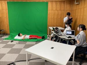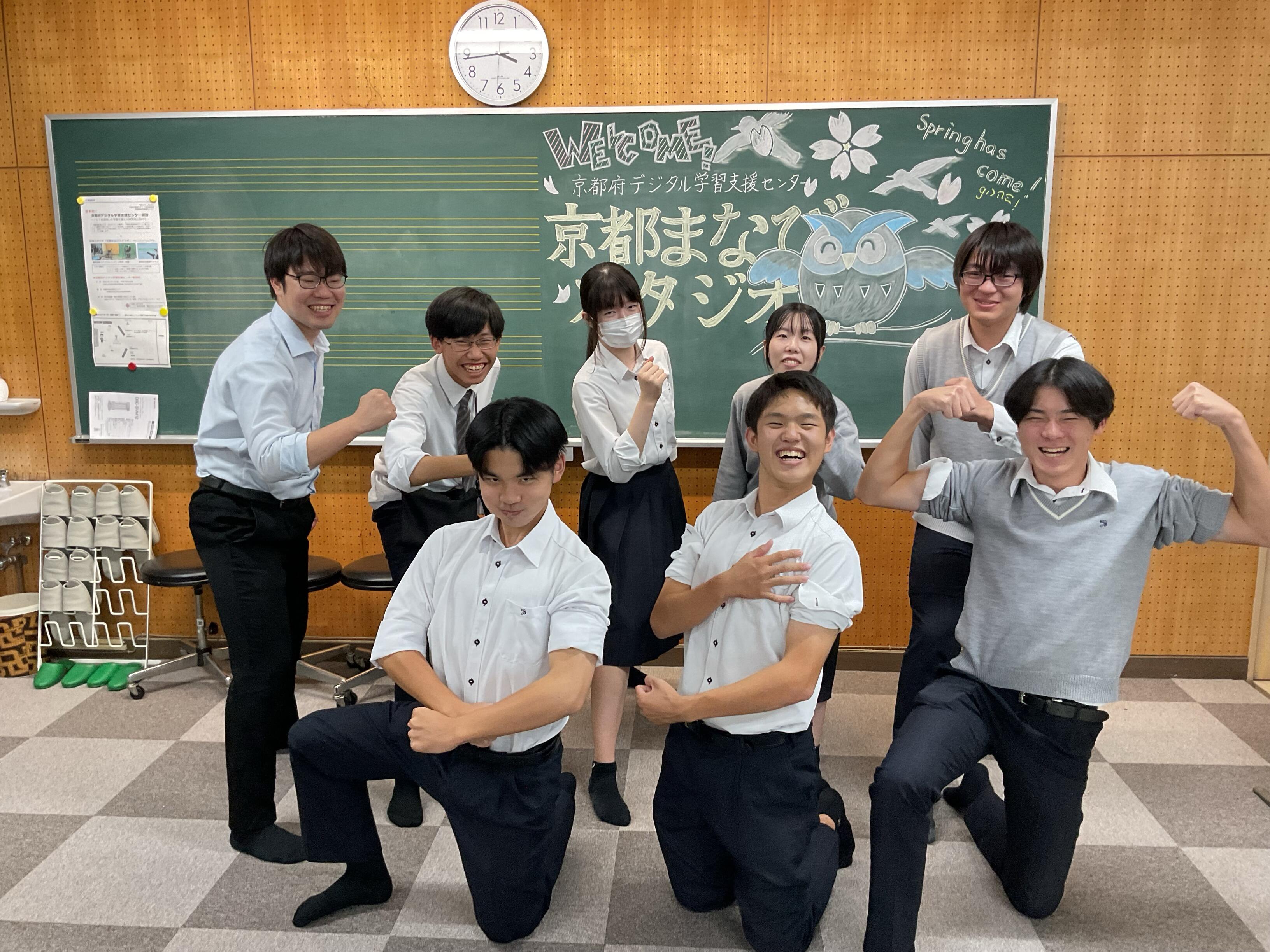 10月17日(金)に課題研究コミュニケーション・ラボ(啓発活動)に所属する8名が京都府デジタル学習支援センターに伺い、小中学校の出前授業でネットトラブルに関する啓発をするための動画を撮影しました。京都府総合教育センター内にある学びスタジオにて、最新機器を使った動画撮影をさせていただき、情報機器に関する知識もつけることができました。