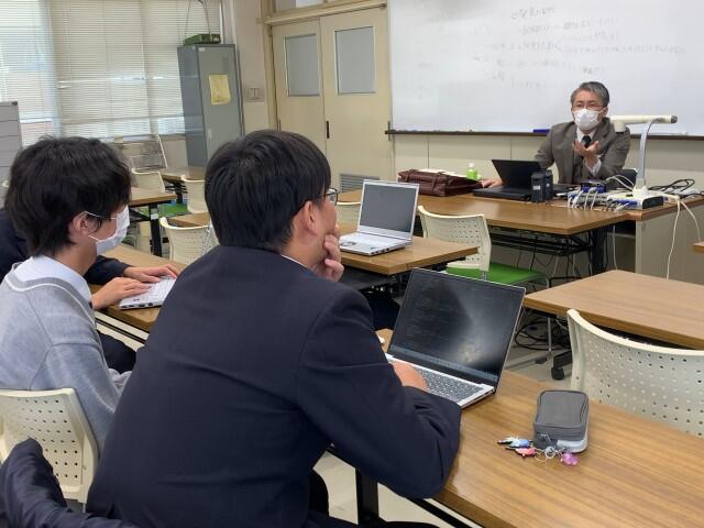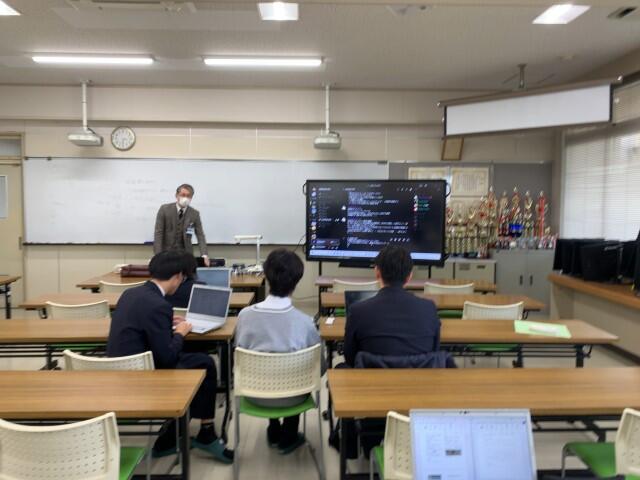 11月21日(金)に情報科学科3年生「課題研究」情報科学・ラボのWeb研究チーム4名が本校にて京都コンピュータ学院の前納一希先生の特別講義を受講しました。