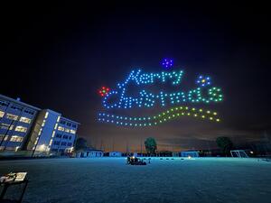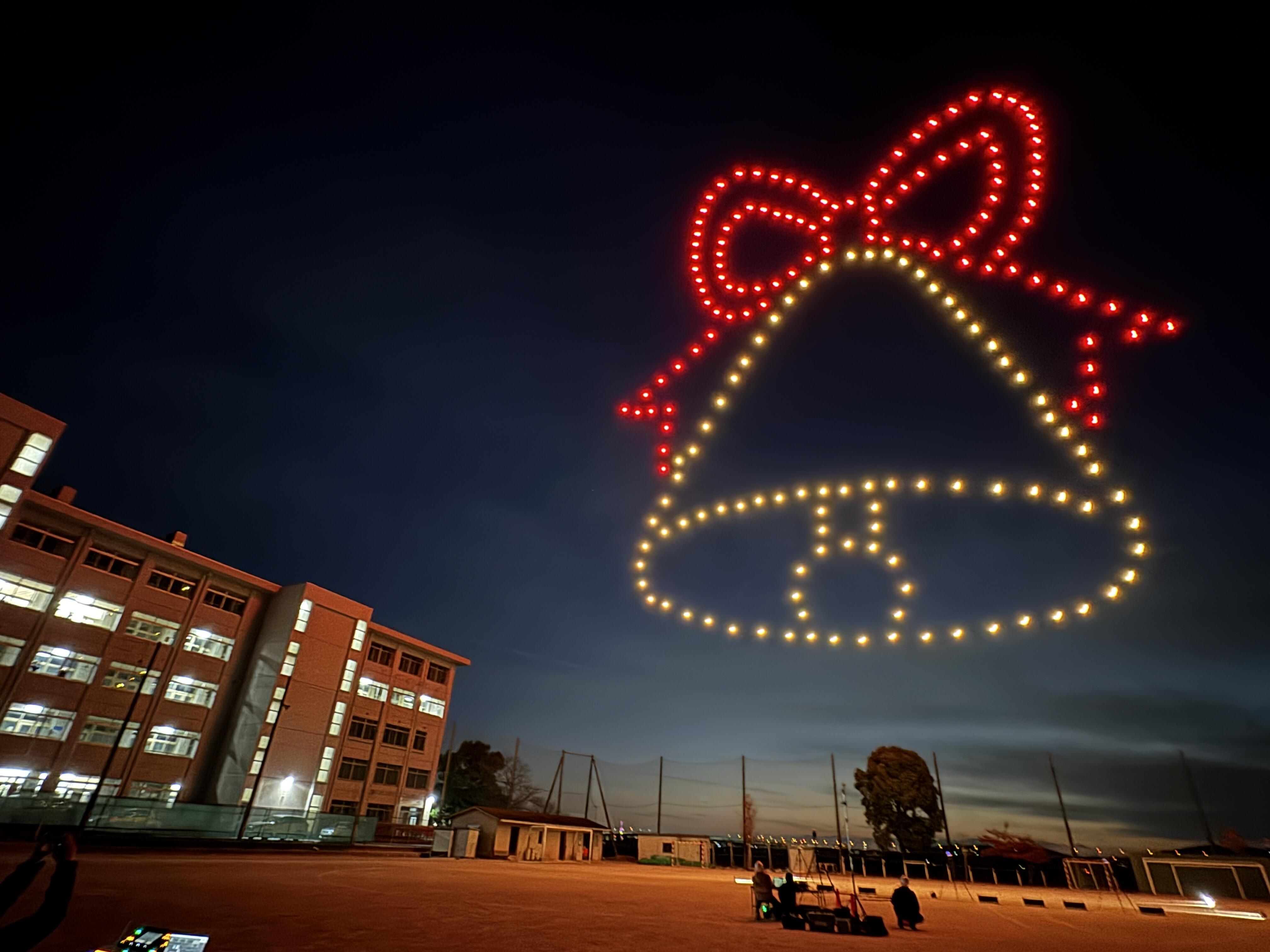 12月10日(水)、課題研究、情報メディア・ラボのに所属する生徒たちが、約半年間にわたり制作に取り組んできたドローンショーを実施しました。