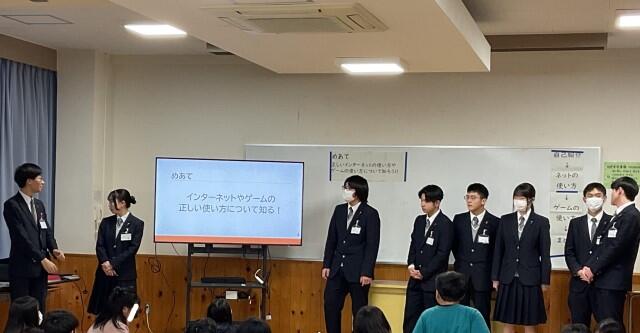1月14日(水)に課題研究コミュニケーション・ラボ(啓発活動)に所属する8名が宇治市立北槇島小学校に伺い、小学校5年生に向けて出前授業を行いました。今回で3回目となる小学校での出前授業でしたが、初回に比べて児童とたくさん対話をしながら授業を行えるようになってきたと思います。出前授業に協力をしてくださっている方々に感謝の気持ちを込めて、残りの出前授業も全力を尽くしていきます。