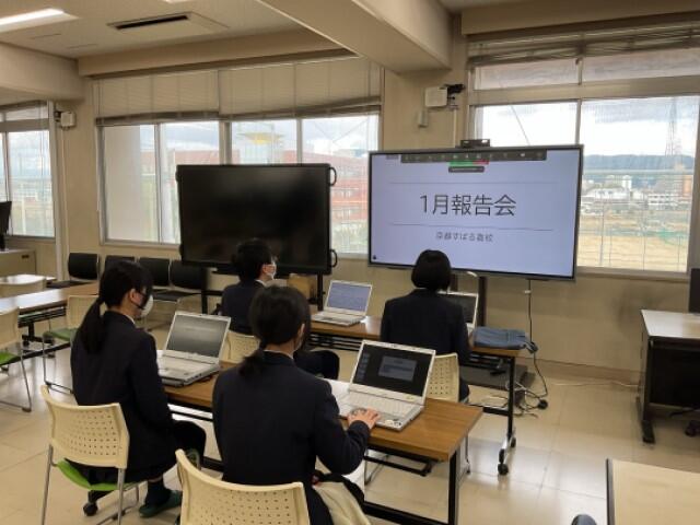 1月21日(水)に情報科学科3年生「課題研究」情報科学・ラボのSim研究チーム4名と山形県立酒田光陵高等学校の4名、岩手県立大学のステファニー・ニックス先生、田村先生に御参加いただき、1月最終発表会をオンラインにて行いました。