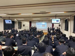 発表会には情報科学科の2年生も集まり先輩たちの発表に真剣に耳を傾けていました。3年生の中には緊張している生徒や、発表中に想定外の事態が発生した班もありましたが、最後までやりきるという姿は聞く人の心を熱くしてくれました。