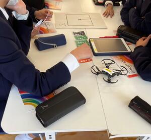 授業の内容としては「プログラミングでドローンを飛ばそう」という内容で実施しました。なかなか触れる機会のないドローンに中学生も興味津々で積極的に取り組んでくれました。