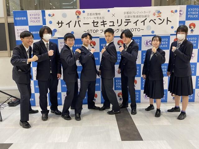12月12日(金)に課題研究コミュニケーション・ラボ(啓発活動)に所属する8名が、洛北阪急スクエアで行われた、『STOP フィッシング in 京都』というイベントに参加しました。2学期始めから準備してきたフィッシング詐欺の寸劇を初めて行い、多くの方の前での啓発で緊張しましたが、無事に終えることができました。