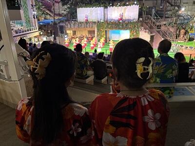 生徒達は浪江町防災センターで防災について学習し、宿泊先のホテルハワイアンズで「ポリネシアンショー」を鑑賞しました。