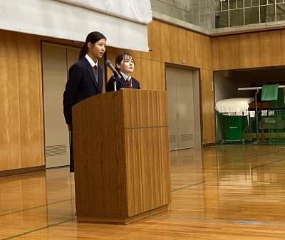 全国の舞台に挑む大井さんの決意表明に対し、全校生徒から温かい拍手が送られました。日頃の「平凡の徹底」が実を結び、大きな舞台へと繋がったことを全校で祝福するとともに、大会での健闘を心より祈念しています。