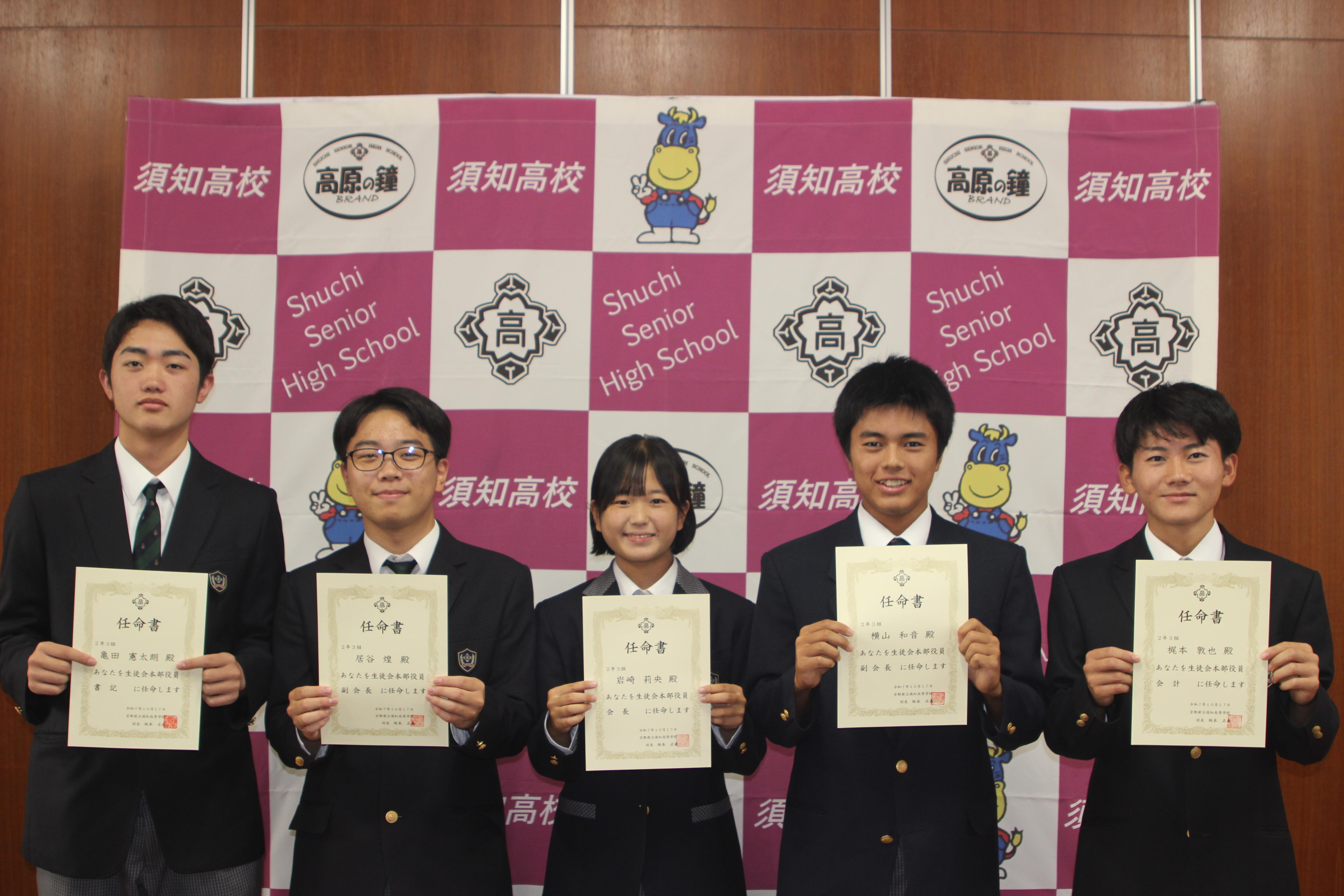 10月8日(水)の生徒会本部役員選挙の結果を踏まえて、10月17日(金)に坂本校長から新生徒会本部役員(会長1名・副会長2名・書記1名・会計1名)に任命書が手交されました。坂本校長からは、皆が充実した高校生活を過ごせるような生徒会活動を行うようにとの励ましの言葉がありました。