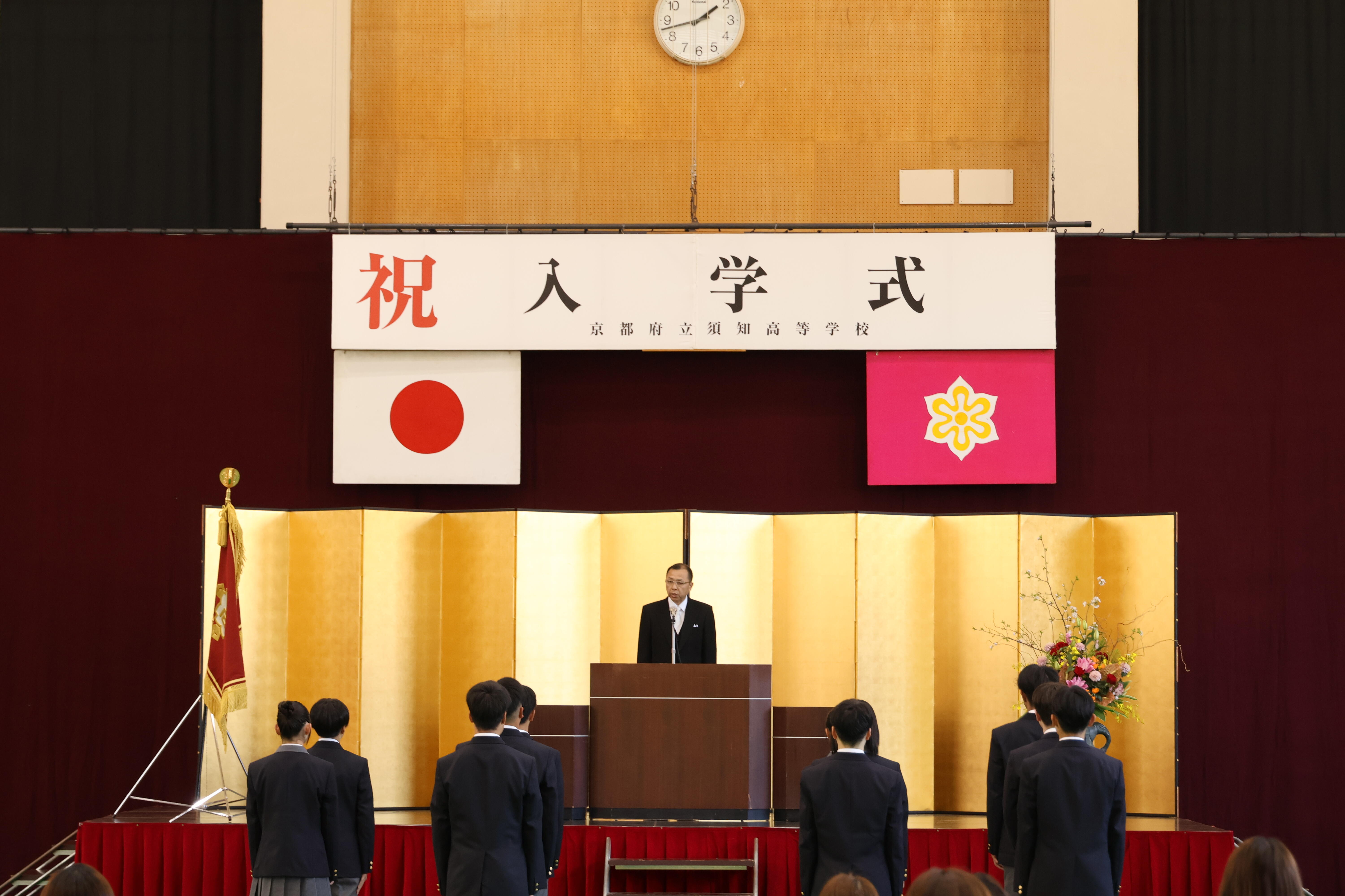 4月8日(水)午後から第1体育館で令和8年度入学式を挙行しました。京丹波町長畠中源一様をはじめ多くの来賓の方々に御臨席いただき、保護者と本校教職員が見守る中で厳粛な式典を行うことができました。入学生を代表して山﨑舜馨さんが宣誓を行い、坂本正義校長から食品科学科12名と普通科24名の生徒の入学が許可されました。新入生の皆さん、保護者の皆様、入学おめでとうございます。日本三大農業教育発祥の地として今年で150年の伝統を誇る須知高校生としての自覚を持ち、実りある高校生活を送られることを期待します。3年後にすべての生徒が満足して本校を卒業していくことができるように教職員一同が全力で生徒のみなさんを支援します。