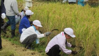未分類 5年生 いねかり体験 5年生が春に植えた苗が大きく実り、収穫の時期を迎えました。もち米なので収穫の時期が少し遅くなりました。地域の方から「片方の手で束をしっかり握って、鎌を当てて一気に引くとうまく刈れますよ」と教えていただきました。一人一人鎌を持って教えていた... 2025.10.15 未分類