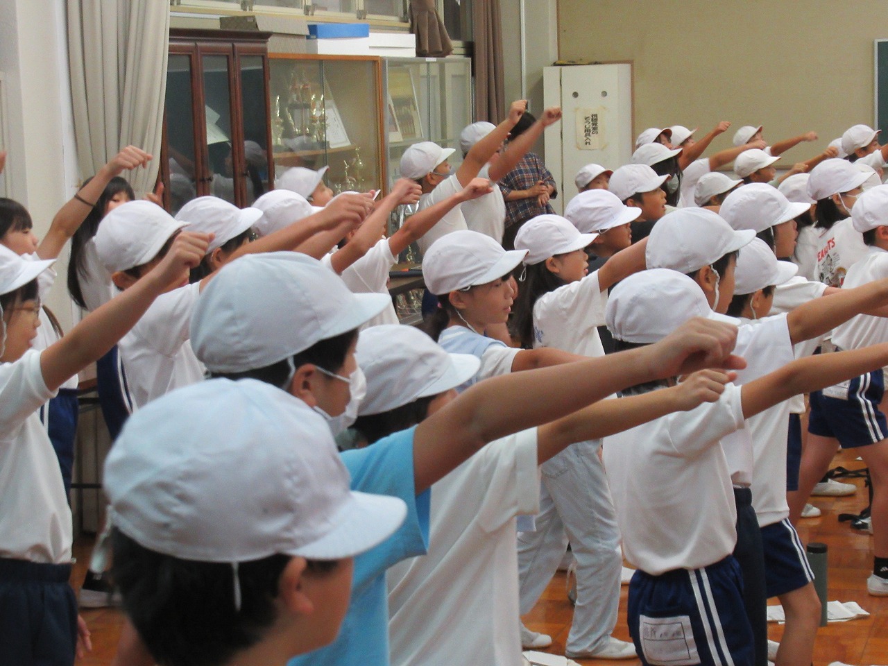 運動会では、赤・白・青・黄組で戦います。5・6年生の応援リーダーを中心に、応援歌やエールの練習に励んでいます。声をそろえて大きな声が出るようになり、どの色も盛り上がりを見せています。リーダーたちは大きな声で指示を出し、自信をもって堂々と振る舞っています。その陰にはたゆみない努力があります。昨日も休み時間にリーダーだけで集まって、本番の制限時間に収まるように何度も練習していました。