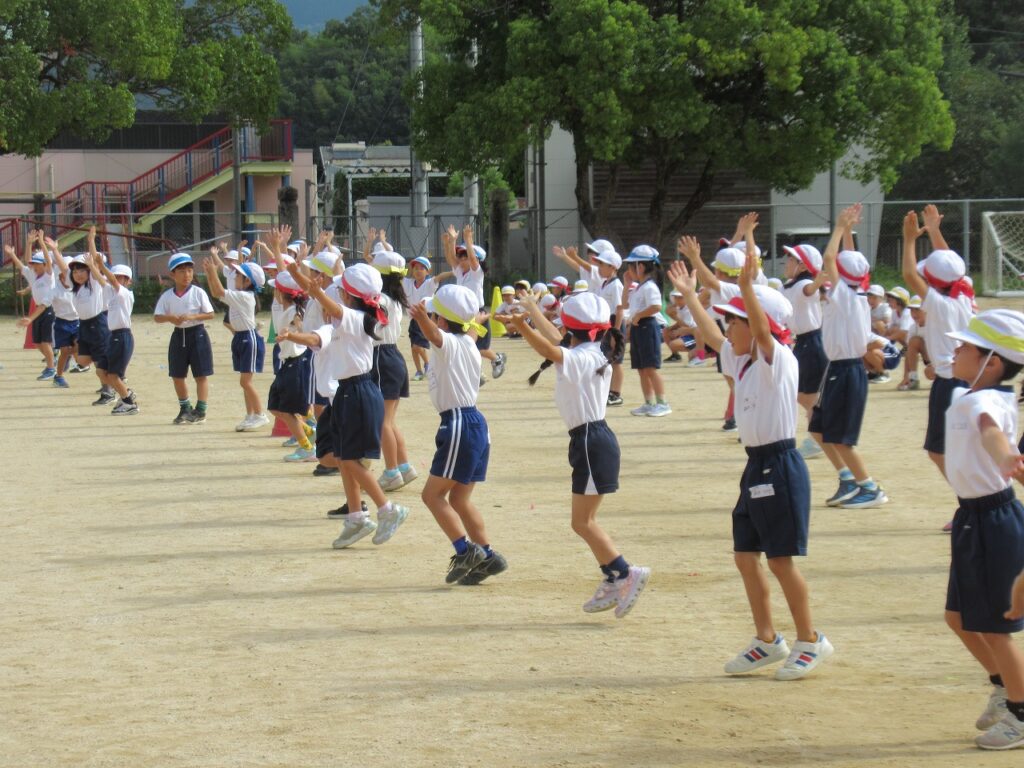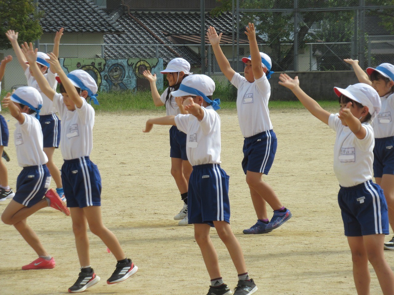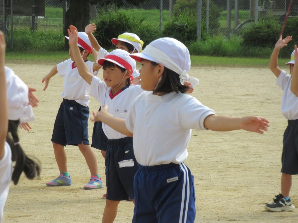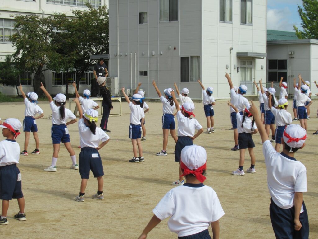 広い運動場で練習をしました。今日は、入退場のしかた、位置や間隔を覚えて通し練習に取り組みました。余裕をもって笑顔で踊れる子どもたちが増えてきました。「運動会の日は、お母さんにどこで見てもらおうかな~」と当日に家の人やたくさんの人たちに見てもらうことを意識している子どももいました。笑顔いっぱいの演技を見せてほしいです。