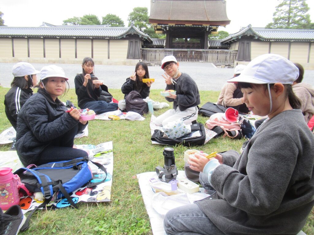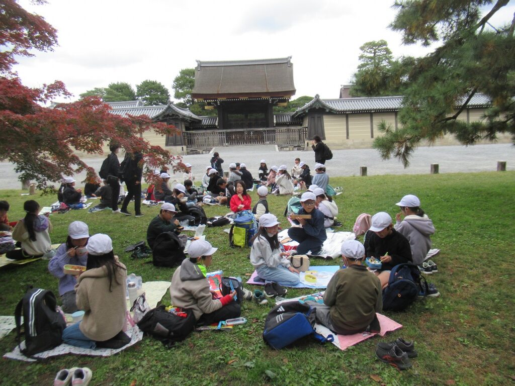 京都御所では、紅葉の下でお弁当と休憩時間を過ごしました。