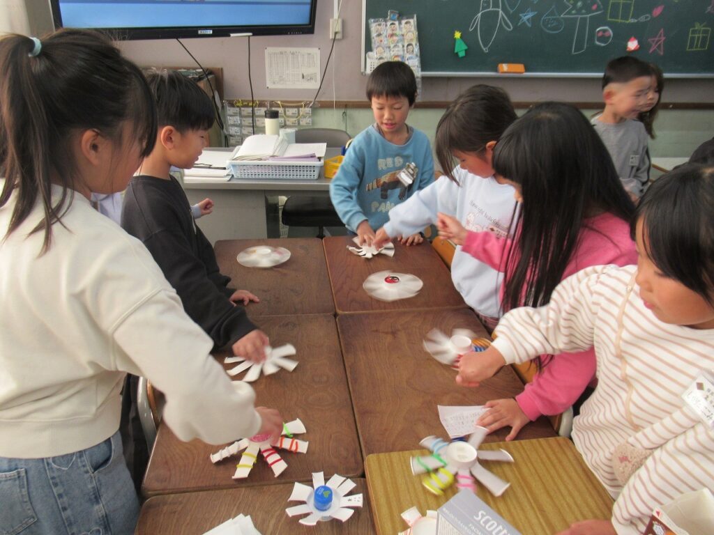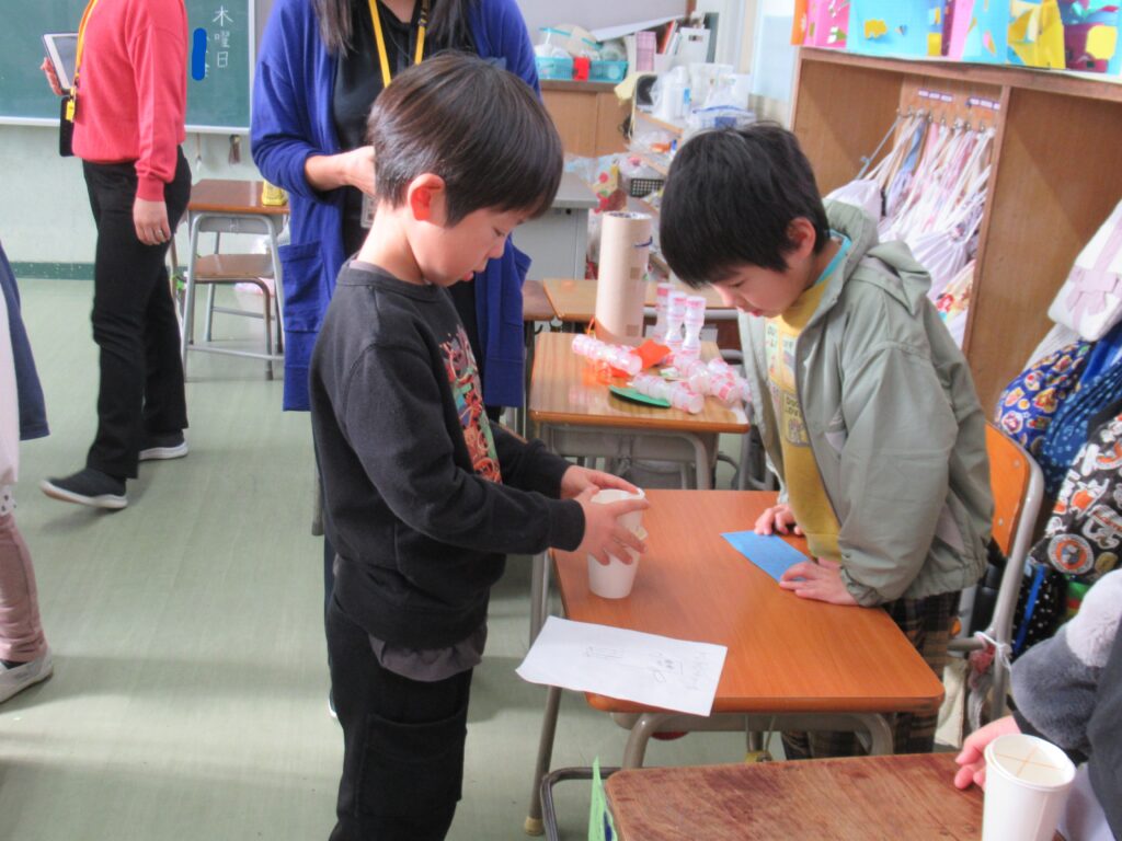 未分類2年生が生活科の学習でおもちゃを作りました。そして、1年生を招待しよう!と1年生が楽しめる工夫を凝らしたおもちゃ、挑戦してくれた人へのプレゼントなどを協力して作りました。当日は、説明をわかりやすく行い、サービス精神旺盛に1年生をもてなしていた2年生。楽しい交流ができました。