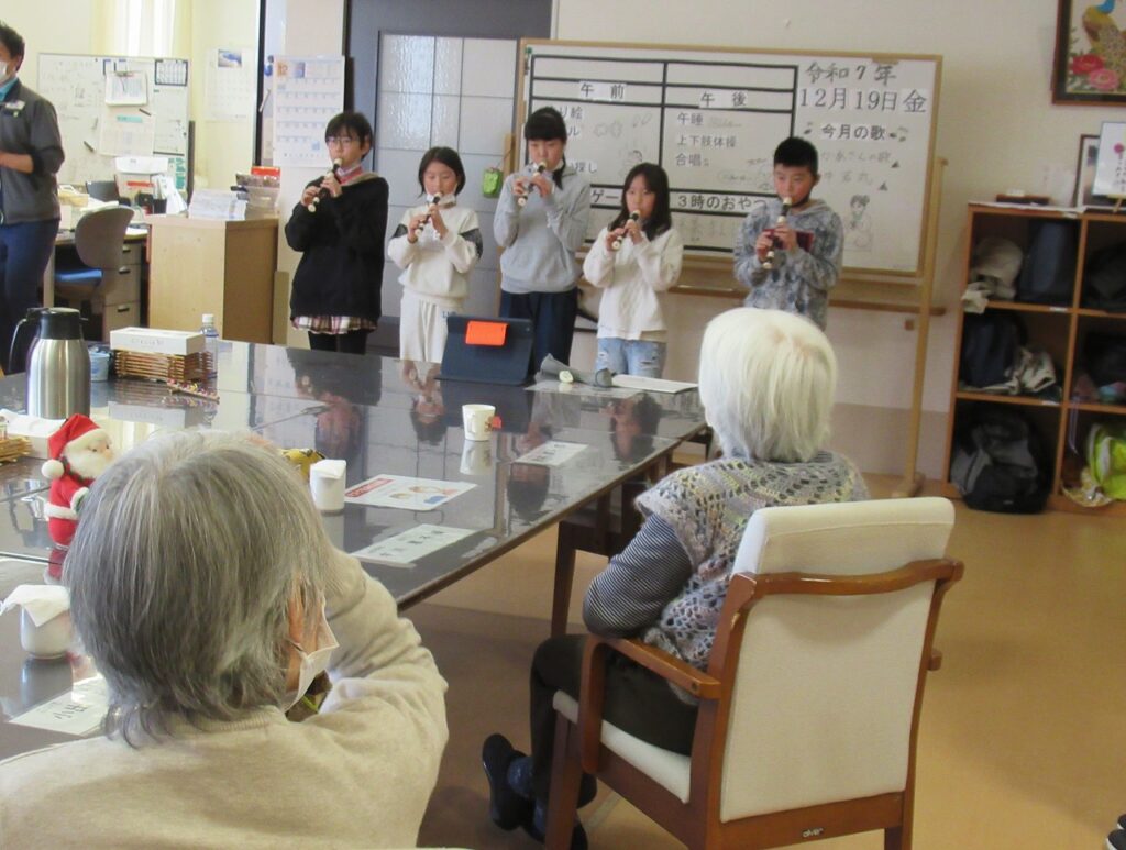 未分類4年生が高齢者福祉施設「豊の郷」を訪問しました。事前に高齢者の人の体の様子や接し方を教えていただき、高齢者の疑似体験もさせていただきました。訪問当日は、リコーダーや歌を聴いていただいたりふくわらいをしたりして交流しました。おじいさんおばあさんの笑顔を引き出していた子どもたちです。
