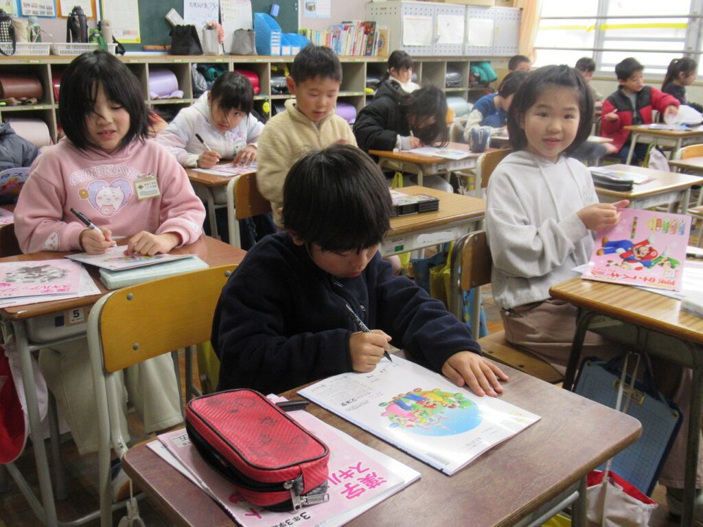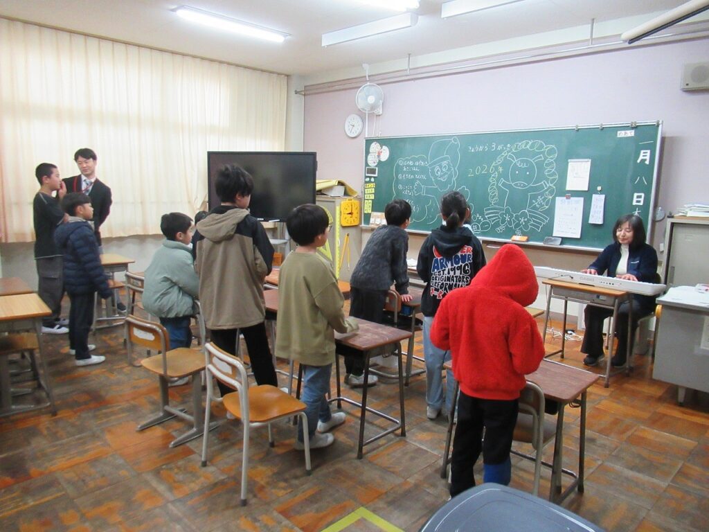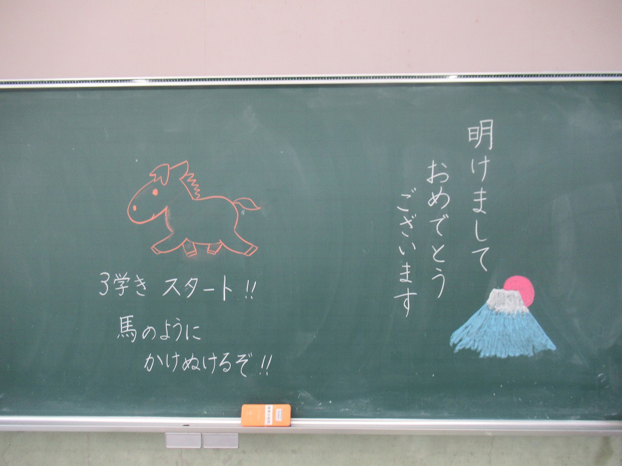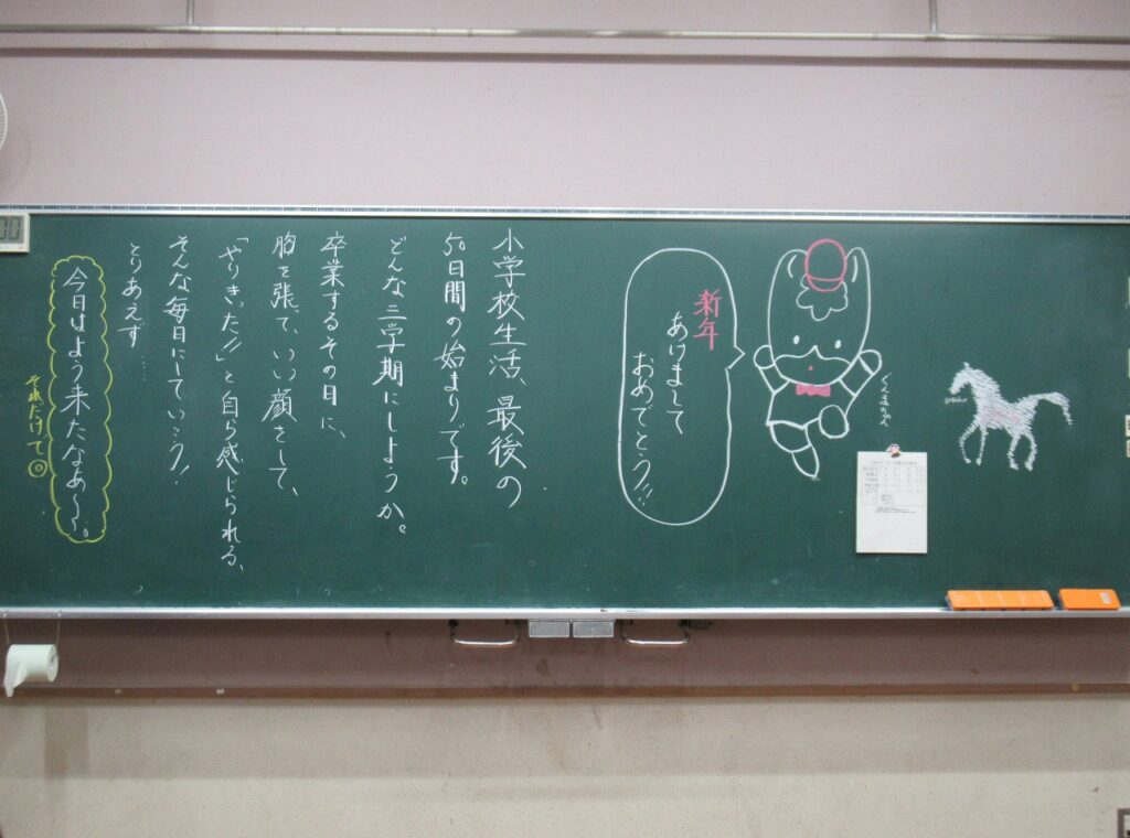 小雨の降る寒い朝になりましたが、子どもたちは久しぶりに出会う友達と笑顔であいさつをかわしていました。「あけましておめでとうございます。今年もよろしくお願いします。」と礼儀正しくあいさつをする6年生もいて、とても感心しました。
