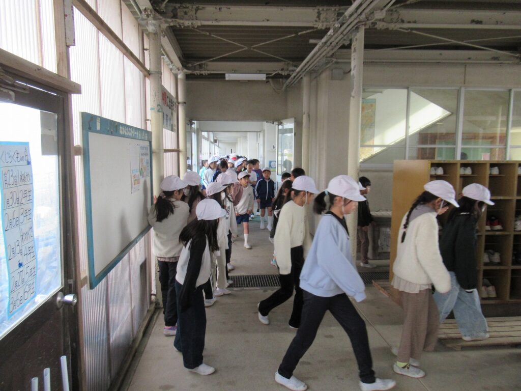 1月15日に、休み時間に地震が起こった時を想定して避難訓練を行いました。いつ、どこで、地震が起きるか分かりません。それぞれの場所で、自分で判断して避難することを目的として行いました。