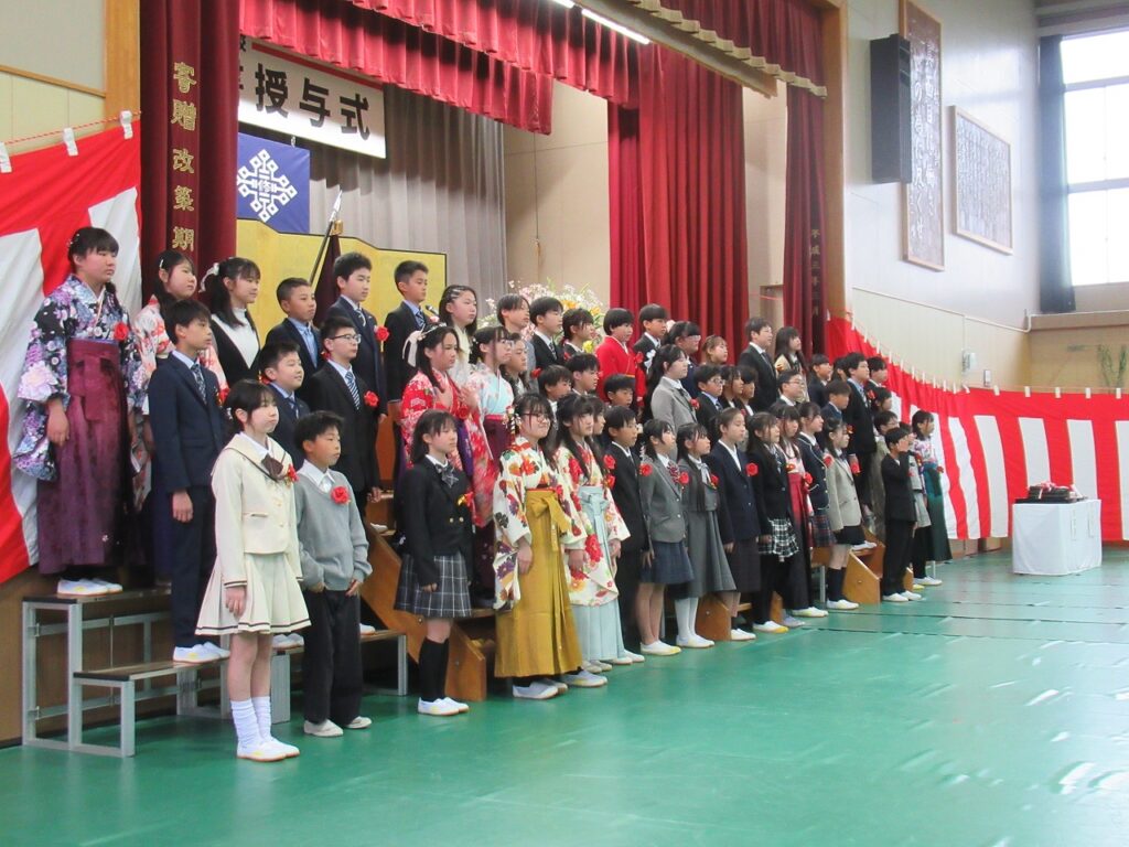 子どもたちが見せる小さな動作にも成長が感じられる、よい卒業式となりました。中学校でも自分のよさを大切に、いろいろなことにチャレンジしてほしいと思います。