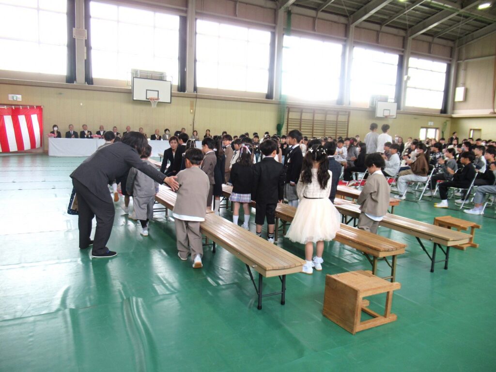 未分類今日は新1年生の入学式。62名の1年生が入学しました。担任の先生から一人ずつ名前を呼ばれ「はい!」と元気よく返事ができました。最後までよく話を聞き、「おめでとう」と言われたら「ありがとう」と言葉を返していました。