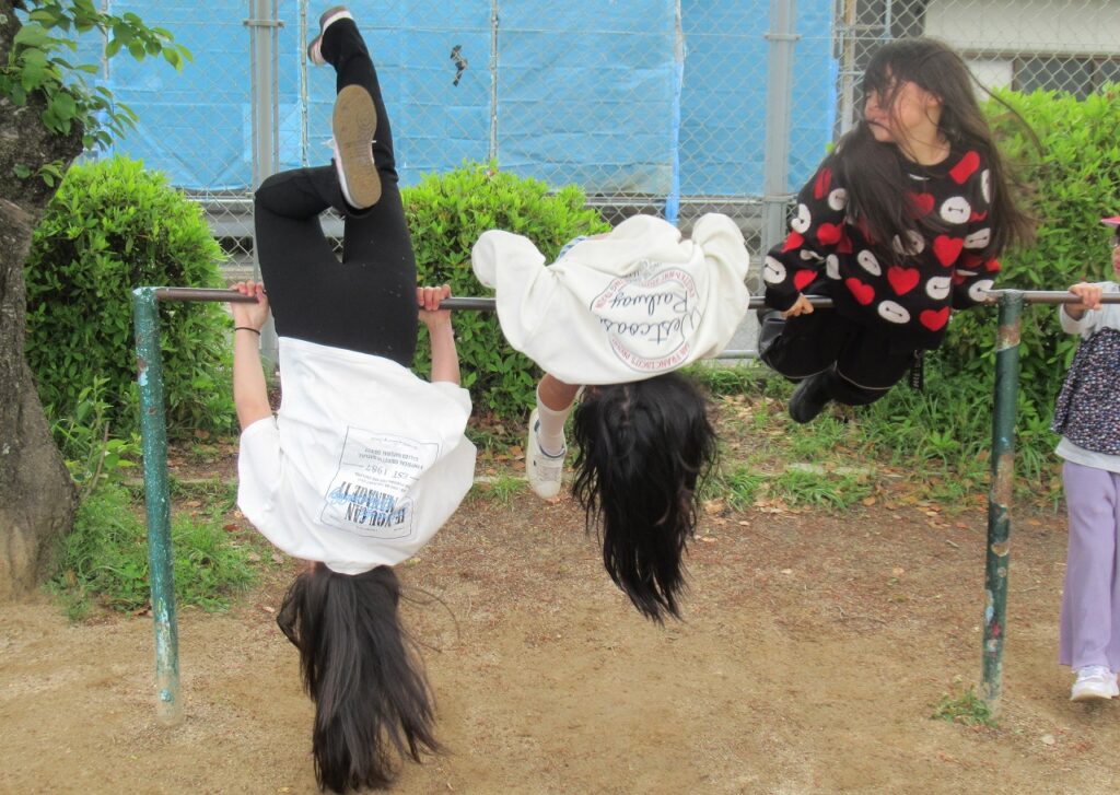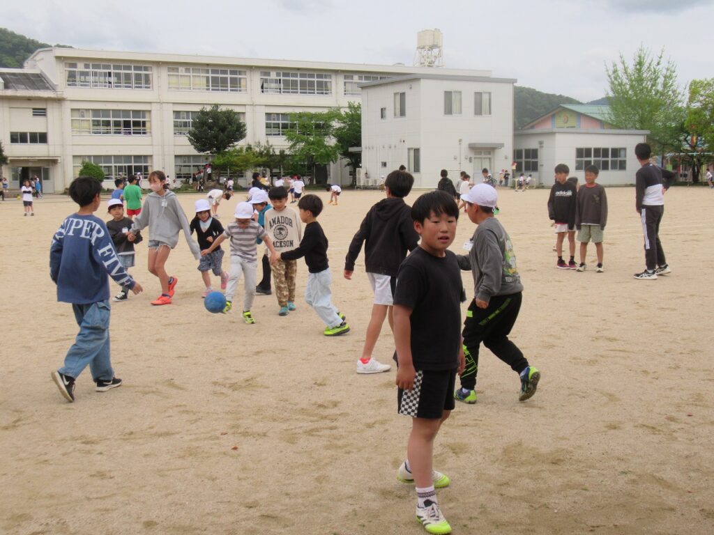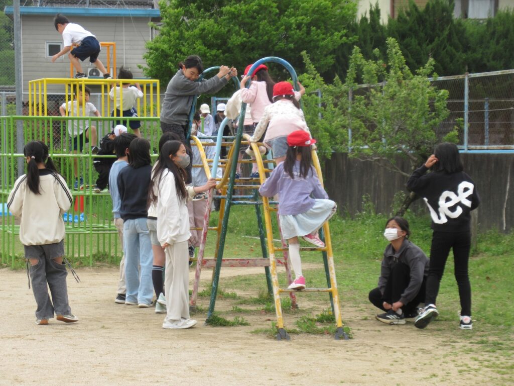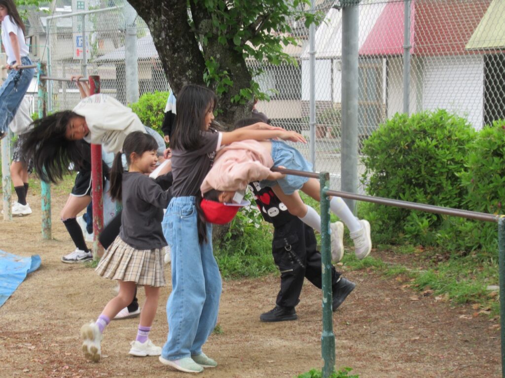 休み時間には、1年生に優しく関わる上級生がたくさんいます。1年生の安全を見守りながら一緒に遊んだり教えてあげたりする上級生たち・・・本当にステキです。