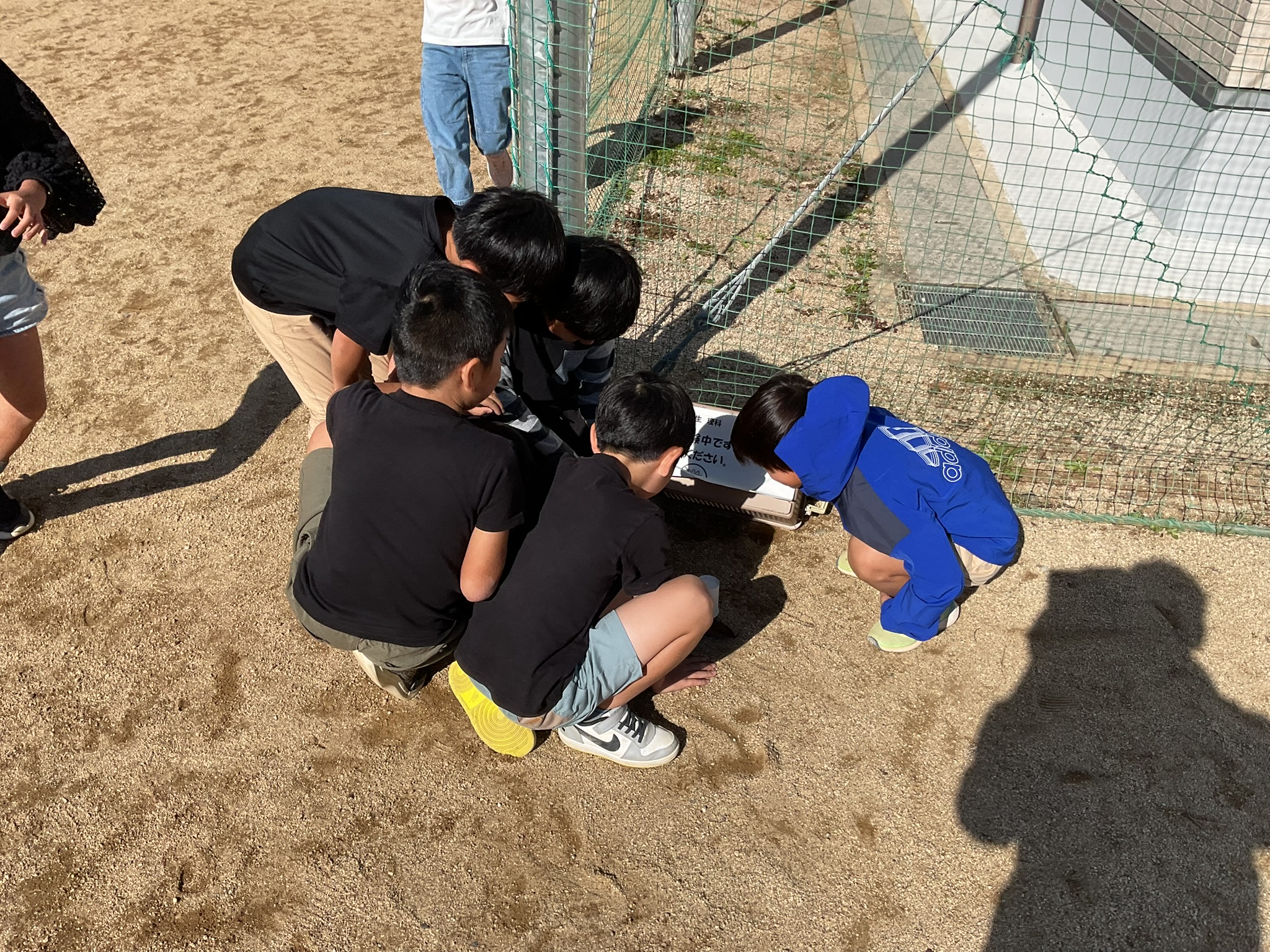 「日なたは暖かい!日かげは冷たい!」「明るさが違うよ!」「日かげは、なんだか湿ってる!」まずは、実際に触って感じました。そして、登校してから設置した温度計で地面の温度を測り、実際に地面の温度に違いがあることを知りました。日光が地面を暖めることを肌感覚で学び、実際に測定をして確かめるという、とっても素敵な時間になりました。