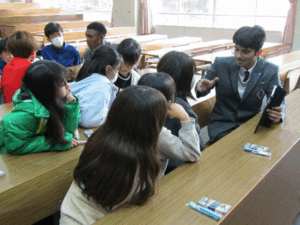大正ニュース18日(火)、6年生児童が成美高校を見学しました。子どもたちは国際交流クラスの留学生と交流したり、自己紹介をしたり、クイズをしたりしました。「私の国は…。」と、自分で感じた日本らしさを伝える姿が見られました。他にも、バスケットボール部・剣道部・野球部など、生き生きと活動しておられる様子を見せていただきました。小学校6年生にとって高校はまだ少し先の未来ですが、実際の学校の雰囲気に触れることで自分の将来を具体的に思い描くきっかけになったと思います。