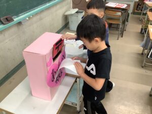 大正小学校では、11月18日(火)〜28日(金)までが人権旬間となっています。「ことばを大切にしよう」というテーマで各学年、様々な取組をしています。1年生は、「あったかハートをあつめよう」を合言葉にうれしい言葉、あたたかい言葉を手紙に書いてポストに投函しています。