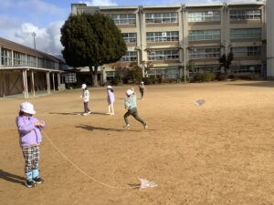 たこあげをしました! 大正ニュース Twitter Facebook はてブ Pocket LINE コピー 2026.01.22 1年生は、生活科の学習でつくった凧であそびました。初めは、高くあげることに苦戦していましたが、手の位置や走り方などをポイントにすることで上手にあげることができました。