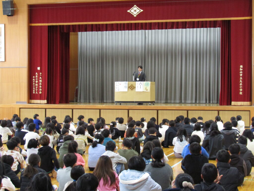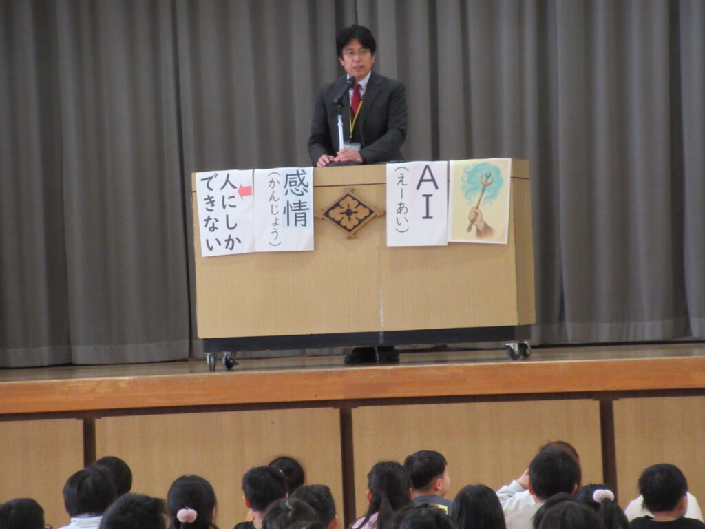 学教朝礼では、校長先生から「AI」の話を聞きました。生成AIはいろいろなことができて魔法の杖のように便利だが、どんなにAIが進化しても「感情」の部分は人間に勝てないことを教えてもらいました。感情がみんなの人生を意味のあるものにします。もうすぐ1年間が終わりますが、みんなで「うれしい」「悲しい」「さみしい」「ありがとう」などの感情を大切にして1年間のまとめをしていきたいと思います。