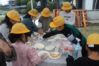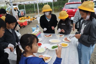 子どもたちは、自分で具材をのせたピザが目の前で焼き上がる様子に大喜び。薪窯を使って本格的に焼き上げてもらい、熱々のピザとホクホクの焼き芋に「美味しい!」の声が上がり、笑顔いっぱいの時間になりました。