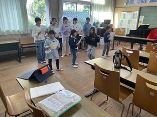 今日のミュージックタイムでは、11月1日(土)の井手町文化祭に向けて、歌やパートの最終練習に取り組みました。