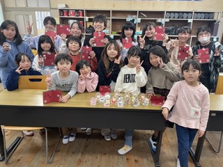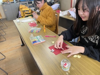 そのあとは、クリスマスカード作り。色ペンや型抜きを使って、思いを込めたメッセージを丁寧に作成しました。完成したカードを嬉しそうに見せ合う姿がとても印象的でした。