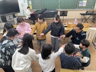 また、メロディベルを使い、音の聞き分けにも挑戦しました。一つひとつの音をよく聞きながら、みんなで曲に合わせて、自分の音を大切に鳴らす姿が見られました。
