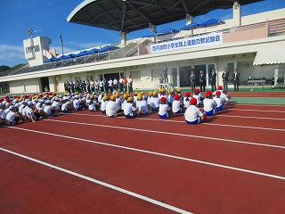 町内の5・6年生児童が陸上交歓記録会に集合しました。