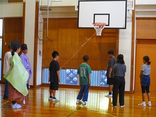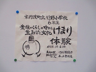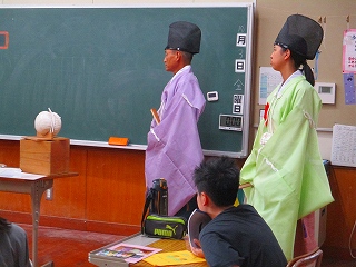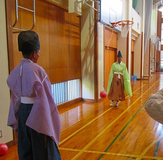 6年生が社会科の学習で「貴族のくらしの中から生まれた文化」のけまり体験を行いました。
