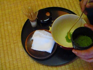 今回は、茶器から茶杓で抹茶を入れるところも特別に体験することができ、子どもたちは緊張しながらもお道具と向き合って、お茶を点てていました。茶器を開けた瞬間「いい香り」と、抹茶の香りを感じている子どももいました。また、自分で点てたお茶を口にして「美味しい」と、嬉しそうに感想を伝えていました。
