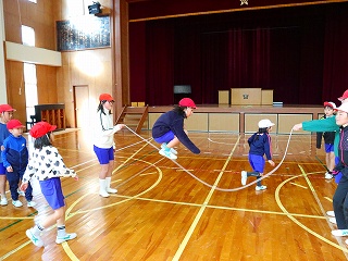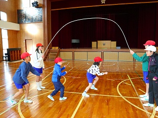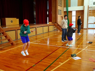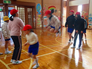 自分が挑戦してみたい技の練習を積み重ねたり、跳ぶ回数の記録更新を目指したり、当日まで体育学習や休み時間、元気っこタイムなどで取り組んできました。なかよし班での8の字跳びは、跳ぶ順番を考えたり、苦手意識をもっている友達を励まし、手伝ったりして、チームで目標回数を決めて練習をしていました。
