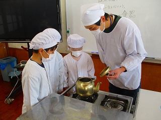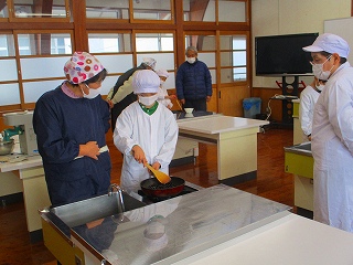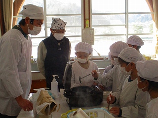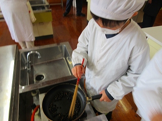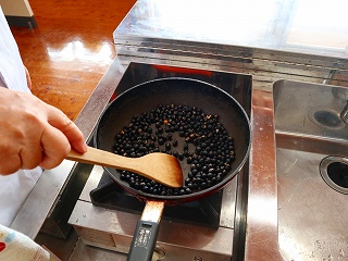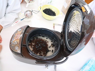 3年生が地域の方のお世話になりながら栽培して、収穫した黒豆を調理しました。