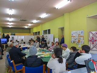 1・2年生は、「ずいずいずっころばし」や「なべなべそこぬけ」の歌に合わせて、手遊びやからだで表現して、楽しい様子を伝えていました。サロンのみなさんも懐かしい曲に思わず口ずさんだり、♪♪そ~こがぬけたら かえりましょ♪♪と、こどもたちのなべがひっくり返ったら、拍手がおこったり、盛り上げてくださいました。