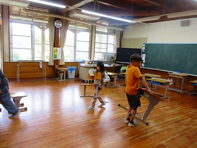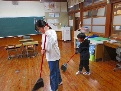 こども園時代にも経験があるので、みんなで協力しながら、自分達の使う教室をきれいにしていました。