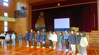 今年度最終の出前発表に出かけました。今回は1年生から4年生までが音楽や国語の時間に学習したことをもとに発表をしました。 1・2年生は、「ずいずいずっころばし」や「なべなべそこぬけ」の歌に合わせて、手遊びやからだで表現して、楽しい様子を伝...