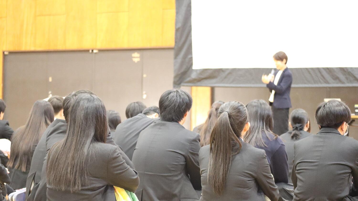 【3年生】性教育講演会体育館にて助産師の方から話を聞き、生命の尊さについて理解深めました。