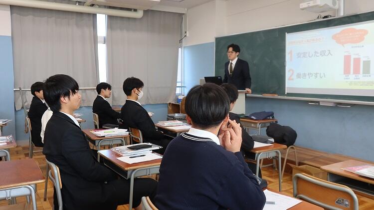 進路の希望に基づいて分野ごとに分かれ、大学・短期大学・専門学校などの担当者から説明を受けました。生徒たちは、進路選択を身近なものとして捉えながら、真剣な表情で話に耳を傾けていました。