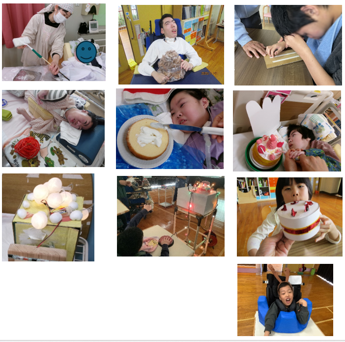 冬といえば…「イルミネーションの季節、音楽の季節、ワクワクの行事の季節」ですね。12月の生活単元学習では、クリスマスの行事をテーマにした「クリスマスケーキを灯そう」に取り組みました。「クリスマスケーキ作り」では、たくさん素材に触れたり、キラキラした飾りを見たりしながら、思い思いの方法で制作を楽しみました。みんなで作ったクリスマスケーキに光を灯し、サンタさんと一緒にクリスマスパーティーを行いました。ダンスをしたり、クリスマスソングに合わせて楽器を鳴らしたりして、温かい笑顔がたくさん見られました。子どもたちの「できた」「たのしい」と感じられる豊かな時間となりました。