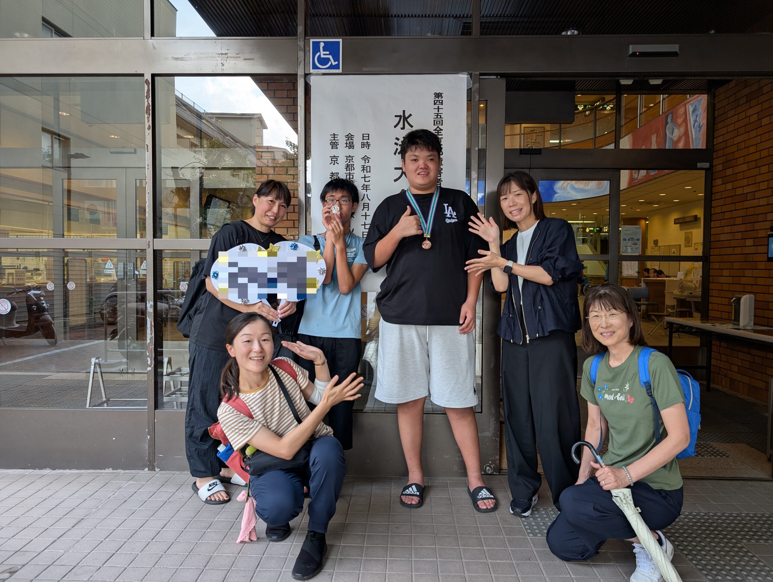 高等部 全京都障害者総合スポーツ大会 水泳大会の部 2025.09.182025.09.17 8月17日の日曜日に全京都障害者総合スポーツ大会 水泳大会の部があり、高等部から2名出場しました。社会人の方や他の学校の生徒と一緒に泳ぎ、清々しい表情でゴールしました。 結果は自由形で銅メダル、バタフライで銀メダルを獲得しました。2学期の始業式にて表彰があり、喜びを全生徒で分かち合いました。 Post Views: 349
