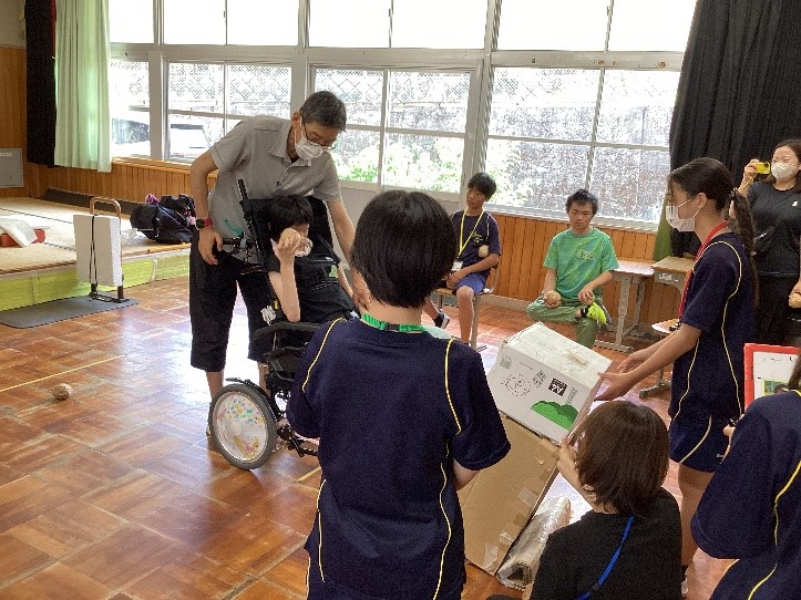 各学級での活動の最後には、中学部で作業学習の時間に作った製品を記念のプレゼントとして贈りました。